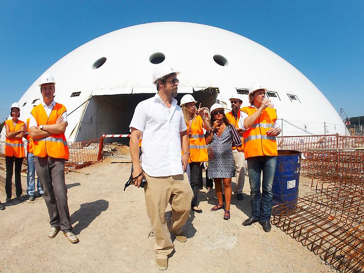 Brad Pitt besuchte als einer der ersten die Bauarbeiten des spektakulären Kulturzentrums - und will sich künftig auch an Ausstellungen beteiligen.