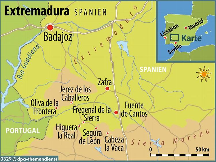 In romantischen weißen Dörfern wie Fregenal de la Sierra mit seiner Stierkampfarena im Innenhof der Burg erklären Hersteller die Aufzucht der Schweine, geben Kochtipps und servieren natürlich Kostproben. Auch in Zafra mit seinen weiß getünchten Kirchen, Klöstern und schattigen Säulengängen begegnet der Besucher auf Schritt und Tritt dem "schwarzen Gold". Wie der Duft von Jasmin- und Olivenblüten liegt der Geruch von Schinken ständig in der Luft.