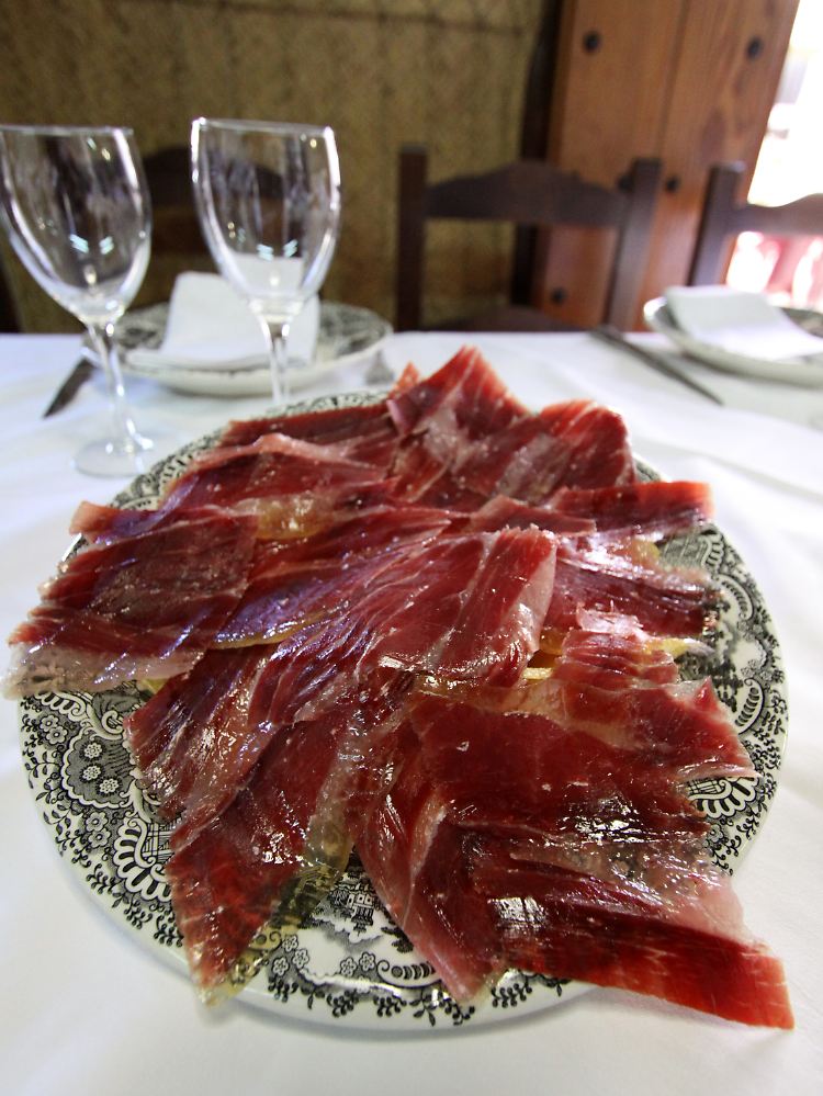 Am besten wird der Schinken 20 Minuten vor dem Servieren geschnitten, damit er noch atmen und schwitzen kann. Dann entfaltet er sein Bouquet am besten. "Gegessen wird aber ganz rustikal mit den Fingern", sagt Pagador im Befehlston. "Das ist hier Tradition."