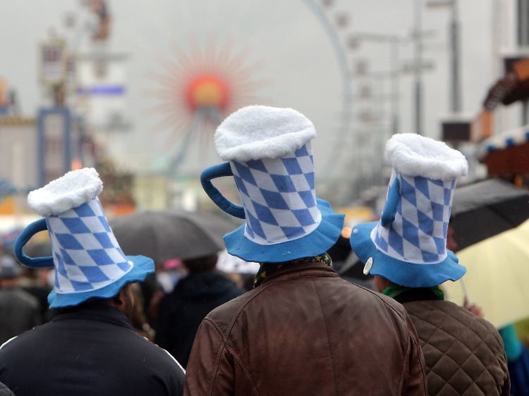 Südamerikanische Touristen mit den obligatorischen Bierhüten beim Oktoberfest in München.