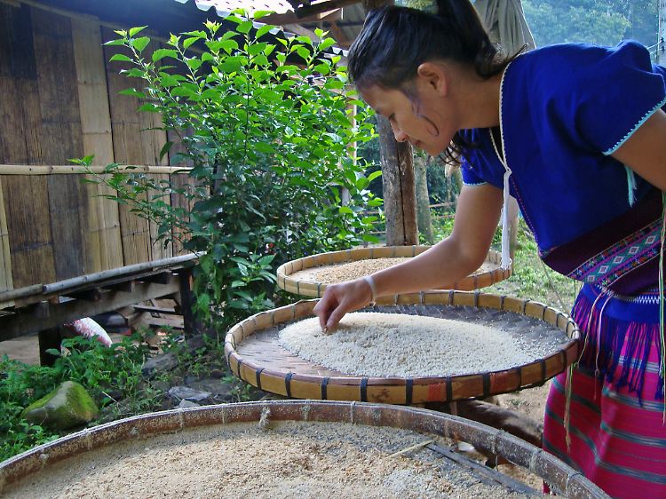 Aus dem Küchenhaus der Familie Pongtwo quillt Rauch. Ehefrau Sangworn stellt Schalen mit Reis, Paprika, Schweinefleisch, Fisch und gebratenen Eiern mit Gemüse auf die Bastmatte. Familie Pongtwo lebt im Dorf Mae Klang Luang im Nationalpark Doi Inthanon, gut 90 Autominuten entfernt von Chiang Mai, der Metropole Nordthailands. "Mae Klang Luang gehört zu den 20 besten Orten Thailands, die auch Ausländern Familienquartiere, Gästehäuser und abwechslungsreiches Landleben anbieten und nachhaltigen Tourismus pflegen", erklärt Potjana Suansri vom Community Based Tourism Institute (CBTI) in Chiang Mai. Etwa 20 Familien in dem 300-Seelen-Ort bieten Quartiere.