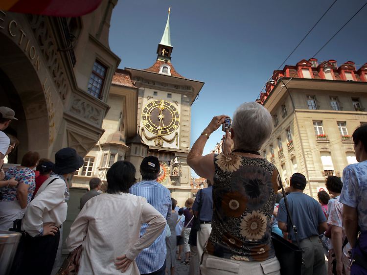 Berns Zeitglockenturm zieht Touristen geradezu magnetisch an - zu jeder vollen Stunde ist ein Figurenspiel mit hohem Unterhaltungswert zu sehen