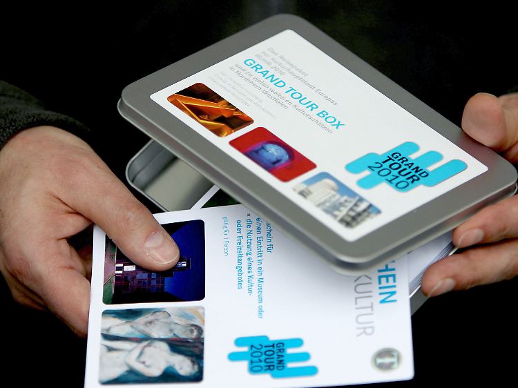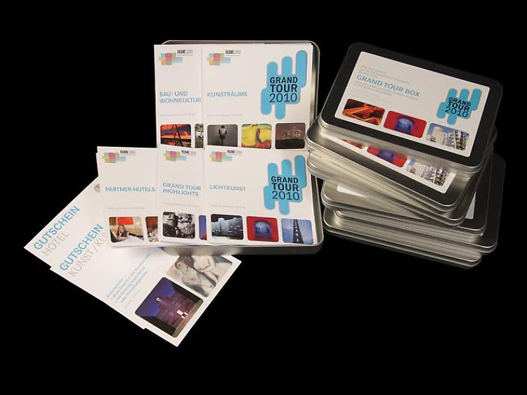 Die "Grand Tour Box" führt mit handlichen Leporellos in Themen wie "Bau- und Wohnkultur" oder die besonders an der Ruhr populäre "Lichtkunst" ein. Die Broschüre "Kunsträume" listet Museen zwischen Duisburg, Hagen und Köln auf und ein Extra-Heftchen macht mit den Höhepunkten des Kulturhauptstadt-Programms bekannt. Dass in der kompakten Blechdose weder eine Landkarte noch ein Fahrplan für den Öffentlichen Nahverkehr der Rhein-Ruhr-Region zu finden ist, hat nach Auskunft der Experten eine einfache Erklärung: "Es ist ein touristisches Produkt mit hohem Weiterentwicklungspotenzial."