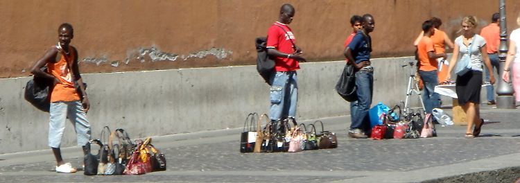 Die Sonnenbrillen und Handtaschen sind schön ordentlich auf Decken aufgereiht. Daneben hocken Straßenhändler und warten auf Käufer. Sobald ein Polizist erscheint, raffen sie ihre Waren zusammen und flüchten. In vielen spanischen Ferienorten gehören die Händler in den Sommermonaten zum Straßenbild. Mancherorts gelten sie als Problem, das den Stadtoberen über den Kopf gewachsen ist.