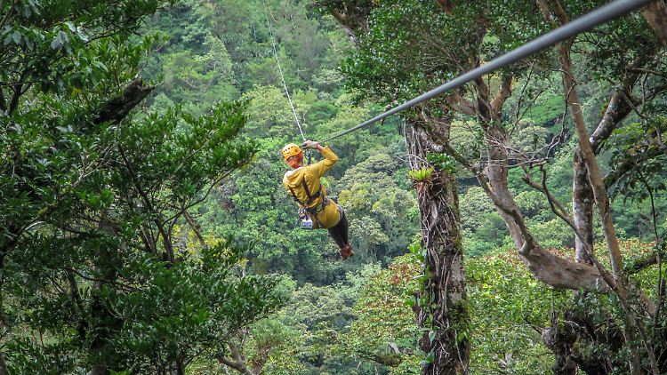Eine abenteuerliche Alternative zum Hängebrückenpfad ist eine sogenannte Canopy Tour, bei der Sie an einem dicken Stahlseil befestigt in rasantem Tempo von Baumkrone zu Baumkrone fliegen und den Dschungel aus der Vogelperspektive kennenlernen.