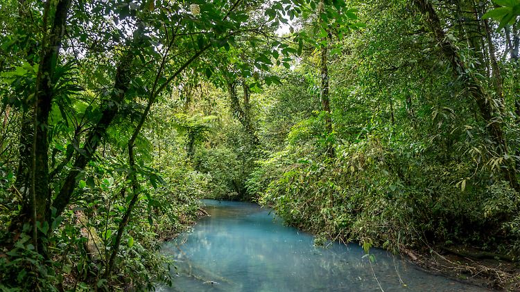 Das leuchtende Blau des Flusses entsteht durch natürliche Sonneneinstrahlung, bei der Mineralien im Wasser reflektiert werden. Eine andere Erklärung für dieses Naturphänomen ist, dass Gott, nachdem er den Himmel blau angemalt hatte, seine Pinsel im Río Celeste auswusch. So erzählen es sich die Einheimischen Costa Ricas, die sich selbst Ticos und Ticas nennen.