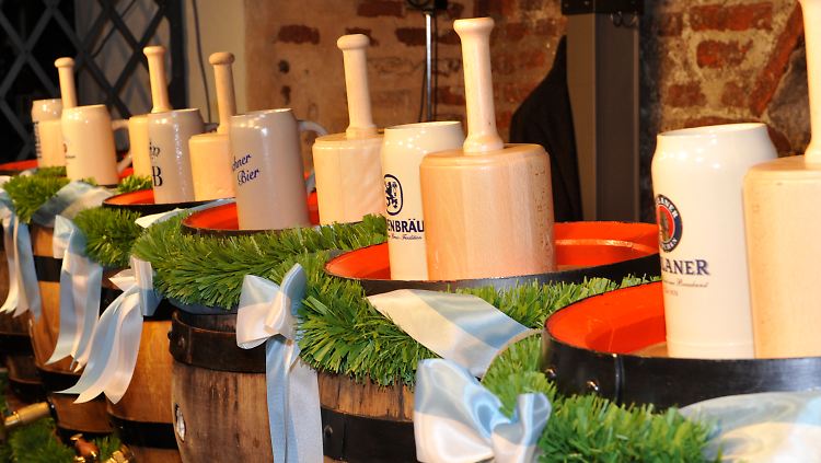 Bald gehts los: Maßkrüge und Schlegel der auf dem Oktoberfest ausschenkenden Münchener Brauereien vor der traditionellen Bierprobe.