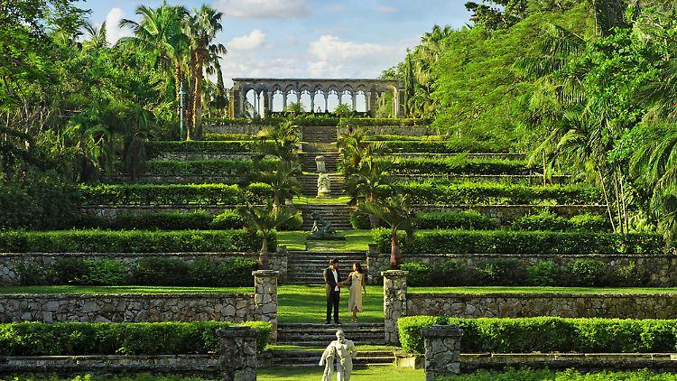 Fast wie in Gartem von Versailles sieht es hier aus - in der Hotelanlage, wo schon Cindy Crawford ihren Honeymoon verbracht hat.