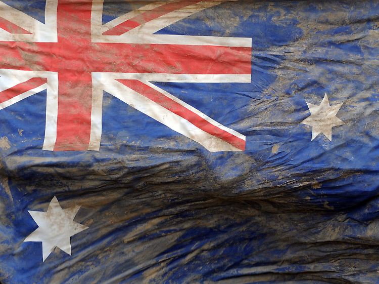 Eine durch das Hochwasser verschmutzte australische Flagge: In vielen betroffenen Gebieten kehrt wieder Normalität ein.