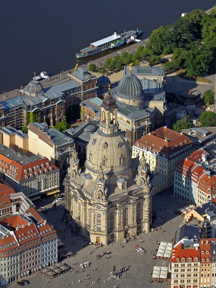 Die Dresdner Frauenkirche war 1726 bis 1743 erbaut worden, ihre Kuppel, "Steinerne Glocke" genannt, dominierte rund 200 Jahre die Stadtsilhouette. Nach der Bombardierung Dresdens gegen Ende des Zweiten Weltkrieges stürzte das Bauwerk ein. Bemühungen um den Wiederaufbau zu DDR-Zeiten scheiterten. Erst mit der Wende erging ein "Ruf aus Dresden", mit dem eine Bürgerinitiative weltweit um Hilfe bat. Von 1994 an wurde die Kirche unter Verwendung von Trümmerresten und -steinen wiedererrichtet. Rund 100 Millionen Euro der Baukosten von 132 Millionen Euro kamen aus Spenden - darunter auch aus den Staaten der ehemaligen Alliierten.