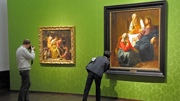 Besucher vor den Vermeer-Bildern "Diana und ihre Gefährtinnen" von 1654 (l) und "Christus bei Maria und Martha" von 1655.