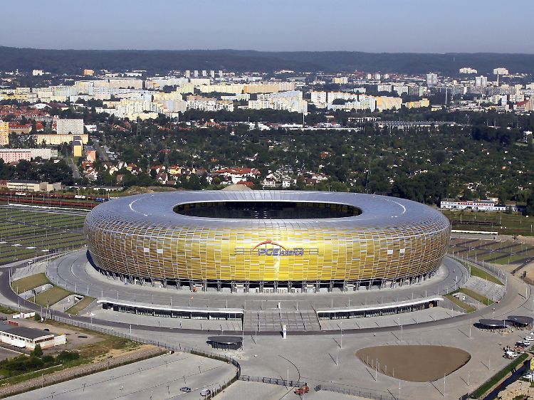 Das Stadion in Danzig: Die deutsche Nationalmannschaft ist zwar in der Stadt untergebracht, spielt in der Vorrunde aber ausschließlich in der Ukraine.
