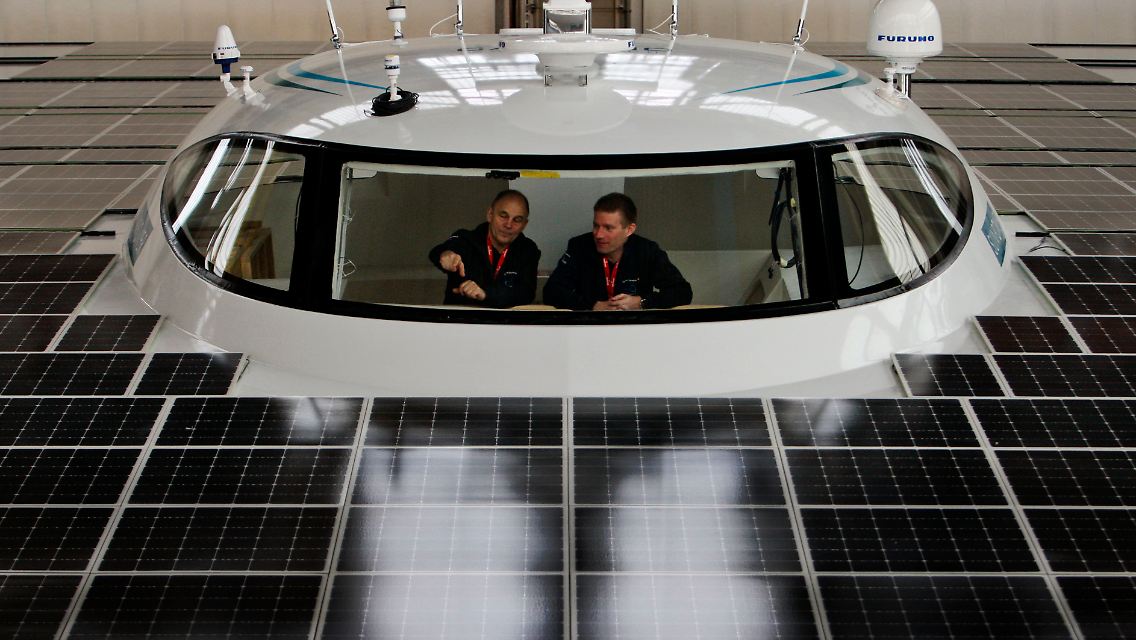 Das weltgrößte Solarboot "Tûranor PlanetSolar" nimmt an der Eröffnungsparade teil.