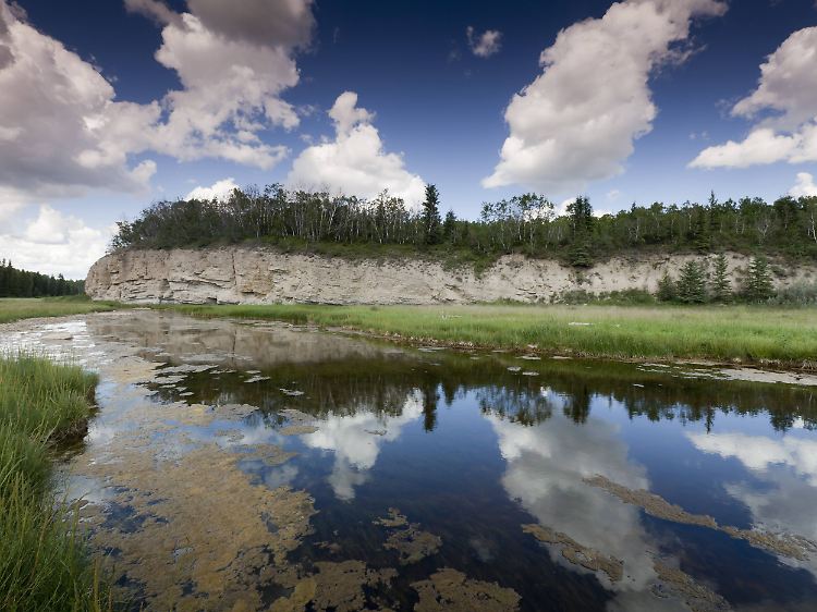 Der Tank des Wohnmobils ist voll, die Vorräte sind aufgefüllt, Fernglas und Kamera liegen griffbereit. Wir sind unterwegs zum Wood Buffalo National Park im Südosten der Northwest Territories. Der Park, der sich über die Provinzgrenze hinaus bis nach Alberta erstreckt, ist der größte Nationalpark Kanadas und der zweitgrößte weltweit. Seine wunderbare boreale Landschaft mit ihren endlosen Seen und Sümpfen zieht uns in ihren Bann. Rund 300 Tierarten sind im Wood Buffalo National Park zu Hause, mehr als 6000 Waldbisons bilden die größte freilebende Gruppe weltweit. Es dauert nicht lange und wir entdecken auf einer Lichtung einige prachtvolle Exemplare, darunter männliche Bisons, die mit ihrem mächtigen Brustkorb eine Länge von bis zu 3,80 Meter und ein Gewicht von stolzen 900 Kilo erreichen können. Es sind die größten Landsäugetiere Nordamerikas. Wir verweilen einen Moment und schauen den Tieren beim Grasen zu. Kaum zu glauben, dass sich diese bulligen Riesen rein vegetarisch ernähren. Aber auch irgendwie beruhigend.