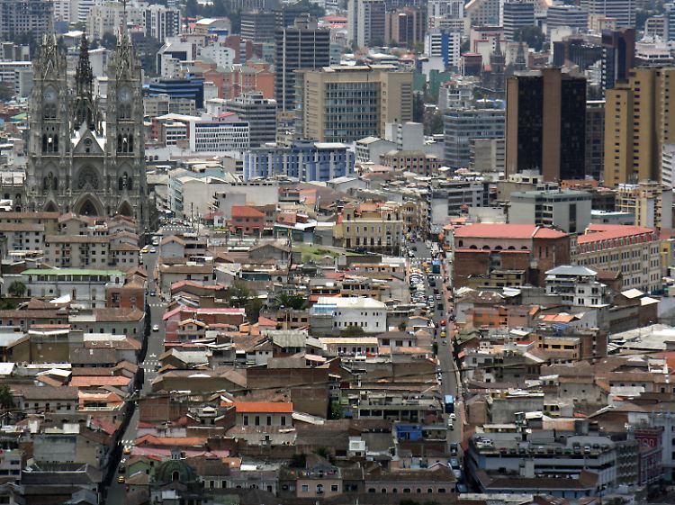 Die Ankunft ist das Schwierigste an Quito. Der Flughafen der höchstgelegenen Hauptstadt der Welt ist mitten in ein von hohen Bergen umgebenes Wohngebiet gebaut. Wenn es nicht gerade in Strömen regnet, herrscht oft dichter Nebel in dem Andental - und bei beiden Wetterlagen muss der Aeropuerto Internacional Mariscal Sucre geschlossen werden. Zudem gilt die abschüssige Landebahn unter Piloten als eine der gefährlichsten der Welt. Klart der Himmel über der ecuadorianischen Hauptstadt aber kurz auf, landen Flugzeuge im Minutentakt.