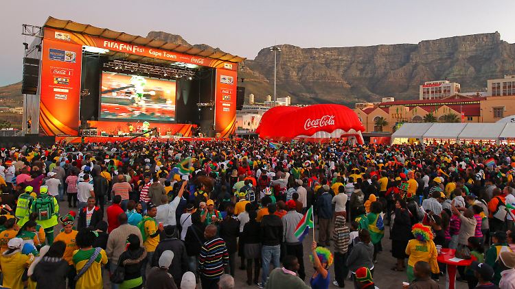 Heute beginnt die Fußball-WM in Südafrika (Bild: beim Fanfest in Kapstadt gestern abend)