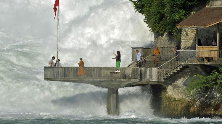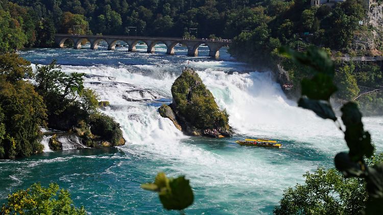 Der Grund, warum man vom Bodensee aus nicht einfach mit dem Schiff in die Nordsee fahren kann, findet sich naturgewaltig in Schaffhausen: der Rheinfall. Gewaltiger als er ist kein Wasserfall in Europa. Auf dem Weg vom Bodensee nach Basel stellen sich dem Rhein mehrfach widerstandsfähige Gesteine in den Weg, in Schaffhausen stürzen schließlich die Wassermassen etwa 23 Meter tief. Pro Sekunde fließen hier rund 373 Kubikmeter Wasser zwischen den Felsen hindurch.