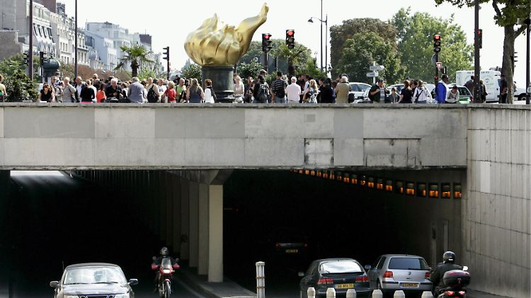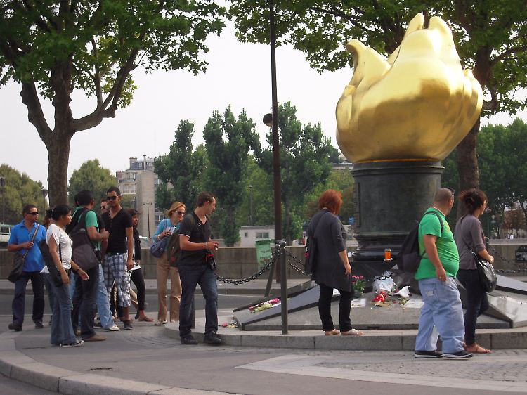 Es ist eine Kopie der Flamme, die New Yorks Freiheitsstatue in Händen hält. Sie wurde als Symbol der französisch-amerikanischen Freundschaft im Jahr 1987 errichtet. Seit dem Tod der Prinzessin hat sie eine neue Bestimmung gefunden. Die Stadtverwaltung zeigt allerdings wenig Begeisterung für den Tunnel-Rummel: Sie säubert die Wallfahrts-Stätte regelmäßig und entfernt die Bilder, die aber wenig später in ähnlicher Form wieder an Ort und Stelle zu sehen sind. Täglich fotografieren dort je nach Jahreszeit mal mehr, mal weniger Touristen oder kleben Zettel in allen möglichen Sprachen auf den schwarzen Marmor.