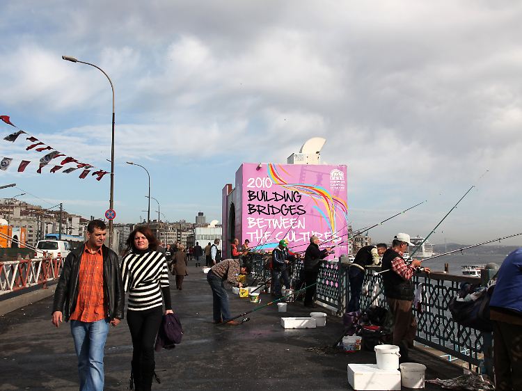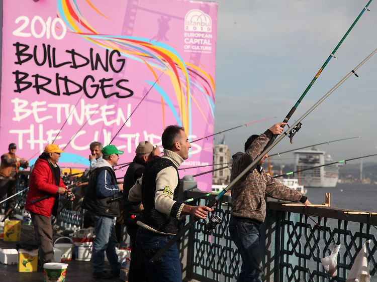 "Brücken bauen zwischen Kulturen": Angler in Istanbul am sogenannten "Goldenen Horn" ...