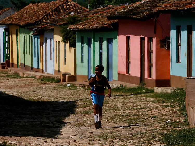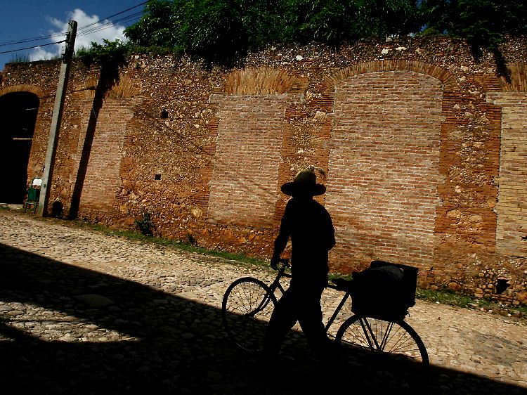 Das "Freilichtmuseum" Trinidad liegt - wie Cienfuegos - an der Südküste. Im Restaurant "Plaza Mayor" in Trinidad unweit des gleichnamigen Platzes ist zur Mittagszeit kaum ein Platz frei. Touristen aus aller Welt lauschen bei Tintenfisch, Hühnchen, Reis und Bohnen der Gruppe "Trinitarios". Natürlich spielt sie den Klassiker "Guantanamera" und das Lied vom Comandante Che Guevara. Zwischen Kopfsteinpflaster, historischen Kirchen, eingeschossigen Häusern mit renovierter Fassade, geschmiedetem Gusseisen und Blumenschmuck hängen Bilder und Parolen von den Revolutionshelden Che und Fidel Castro.