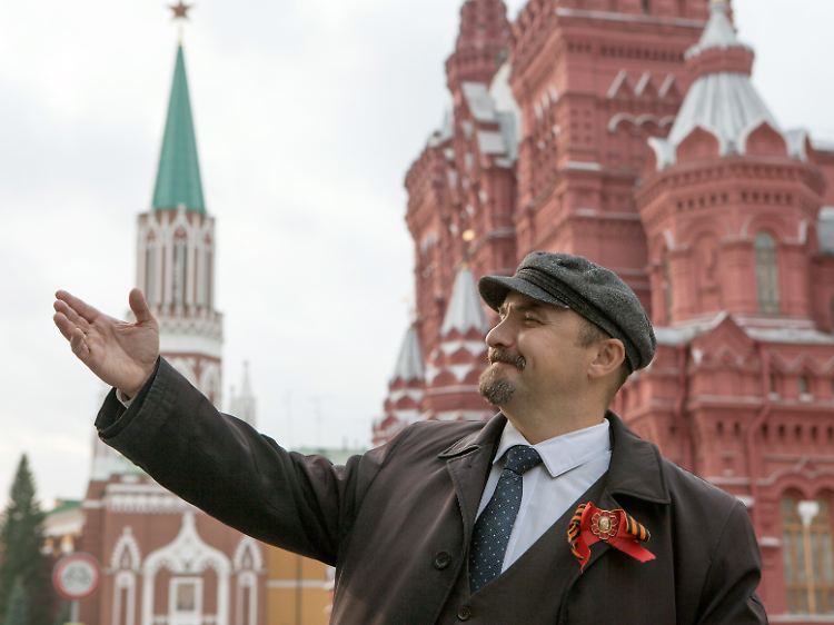 100 Jahre nach der Oktoberrevolution in Russland ist Revolutionsführer Wladimir Iljitsch Lenin nicht nur historische Ikone und Touristenattraktion, sondern auch Einkommensquelle. "Ich fühle ein Band der Verwandtschaft mit ihm", sagt Dmitri und grinst schelmisch. Mit Spitzbart und Schlappmütze posiert er in der Nähe des Lenin-Mausoleums auf dem Roten Platz als Lenin-Double für Fotos mit Touristen. Zwei bis drei Mal pro Woche stehe er dort und verdiene sich etwas dazu. 500 Rubel (etwa 7 Euro) verlange er pro Bild. Wie viel er einnimmt, sei sein Geheimnis, sagte der ausgebildete Ökonom.