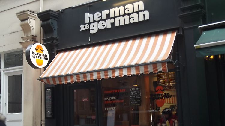 Aber ich will noch was sehen. Ich finde schnell den Weg zum Picadilly Circus, dem Platz mit der weltberühmten Reklame. Ein kurzer Stopp nur – für mehr ist keine Zeit. Danach streune ich ein wenig durch die Straßen, und was sehe ich? "Herman ze German" – eine deutsche Bratwurstbude mitten in London City. Und eine richtig erfolgreiche noch dazu. Nicht weit von der Themse entfernt liegt das Lokal, direkt neben britischen Restaurants. Drei Läden gibt es in ganz London, die Briten stehen auf die Wurst, die extra aus dem Schwarzwald importiert wird, und für ihre "Sausage" stehen sie Schlange. Ich bin überrascht.