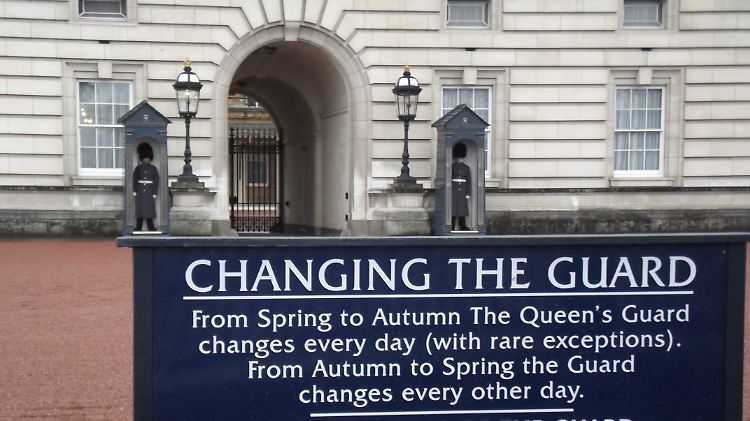 Nach einer guten Stunde mache ich mich auf in Richtung Westminster: Es erwarten mich Big Ben, Houses of Parliamant, Westminster Abbey sowie Downing Street Number 10. Das Wetter ist immer noch eklig, aber ich lasse mir die Laune nicht vermiesen und bestaune die Londoner "Must Sees". Ich überlege, die Westminster Abbey zu besichtigen. Aber zu meinem Erschrecken stelle ich fest: Lockere 20 Pfund (25 Euro) Eintritt soll es kosten. Das finde ich ganz schön happig. So schön kann keine Kirche sein, oder? Nein, da mache ich mich wieder zu Fuß auf den Weg in Richtung Buckingham Palace - einmal der Queen winken. Die scheint auch da zu sein, denn die Flagge weht über dem berühmten Palast. Ich fühle mich etwas vom Winde verweht, möchte aber dennoch die Garde bestaunen. Den Blick auf den Palast gibt es kostenlos - und ist natürlich ein Muss, vor allem, wenn man etwas für Klatsch über Camilla, Kate, William und Harry übrig hat.