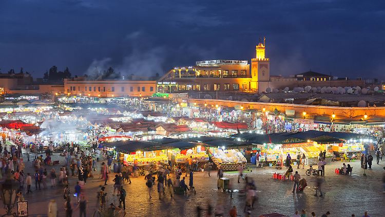 Die Agdal- und die Menara-Gärten gehören seit 1985 wie die Altstadt von Marrakesch zum Unesco-Weltkulturerbe, womit wir in unmittelbarer Nähe des Marktplatzes Djemaa el Fna wären, ohne dessen Besuch man Marrakesch nicht erlebt hat. Schlangenbeschwörer, Gaukler und Henna-Künstler geben Marrakeschs Mittelpunkt abends ein jahrmarktähnliches Flair. Die warme Luft ist erfüllt von exotisch-würzigen Duftschwaden der unzähligen Essensstände, die Atmosphäre wirkt auf den staunenden Besucher wie ein faszinierender, fast unwirklicher orientalischer Zauber. An der Nordseite des Platzes geht es in verwinkelten Gassen ähnlich spektakulär zu.
