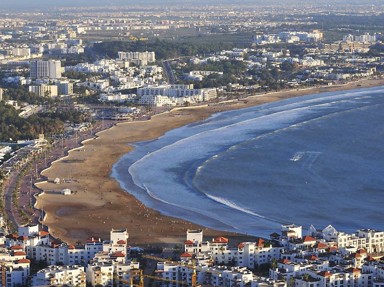 "Gebadet in ein herrliches Licht direkt am Meer, liegt ein endloser Strand und eine in den Dünen versteckte weiße Stadt: Agadir." In dieser Liebeserklärung, entdeckt in einem marokkanischen Reisemagazin, mag ein wenig zu viel Pathos stecken - allerdings auch ziemlich viel Wahrheit. Denn die "Perle des Südens", wie Agadir auch genannt wird, ist mit seinem zehn Kilometer langen Sandstrand und den gut 300 Sonnentagen im Jahr ein begehrtes Reiseziel. Mehr noch: Ursprünglich ein Fischerdorf der Berber, ist Agadir heute die modernste Stadt in Marokko und nicht zuletzt wegen des ganzjährigen milden Klimas das größte touristische Zentrum des Landes.