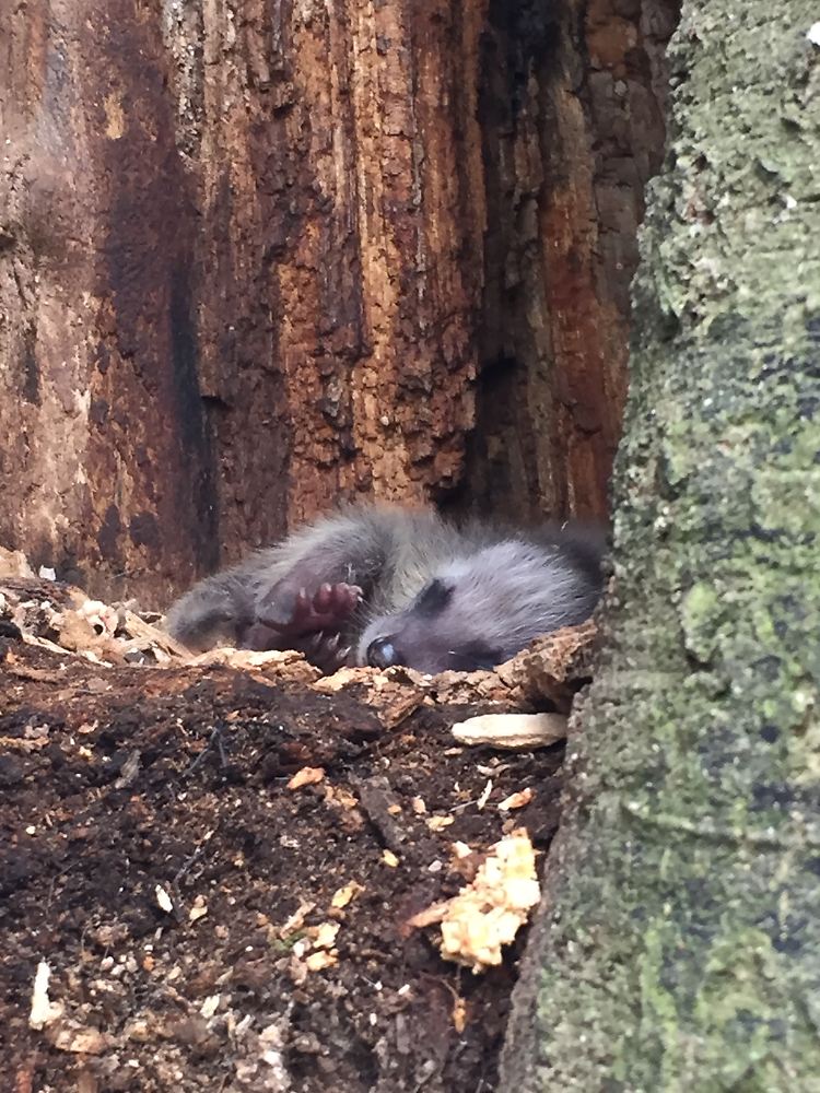 Ein paar Kilometer der Wanderung sind rum, ich habe mich "eingegroovt", es macht richtig Spaß. "Da schaut, links im Baum ein Waschbär" - der Begeisterungssturm ist bei allen groß, wir schauen uns den halbausgehöhlten Baum an und dann die kleine Tier-Sensation: zwei kleine Waschbären-Babys. "Das sehe ich auch nicht alle Tage, toll" - selbst der Ranger ist ganz aus dem Häuschen und macht schnell ein Foto. Später sagt er begeistert, dass er in den kommenden Tagen noch einmal vorbeischaut, ob die Kleinen noch da sind.