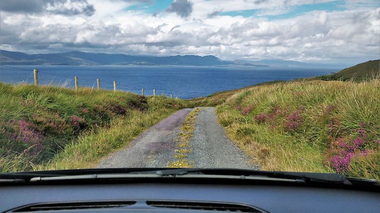 Größtes Problem für deutsche Autofahrer: In Irland fährt man links. Potenziell kritische Situationen gibt es viele. Beim Abbiegen aus einer Seitenstraße gilt wie auch beim Überqueren einer Straße: Erst rechts, dann links schauen! In Kreisverkehre biegt man links ein, von rechts kommende Autos haben Vorfahrt. Vorsicht gilt auf Straßen ohne Fahrbahnmarkierung, von denen es viele gibt - wenn einem hier nach längerer Zeit ein Auto entgegenkommt, will man aus Reflex schon einmal nach rechts ausweichen. In den touristisch erschlossenen Gegenden mahnen Schilder unter anderem auf Deutsch: "Links fahren!" In einsameren Gegenden muss man schon selbst dran denken.