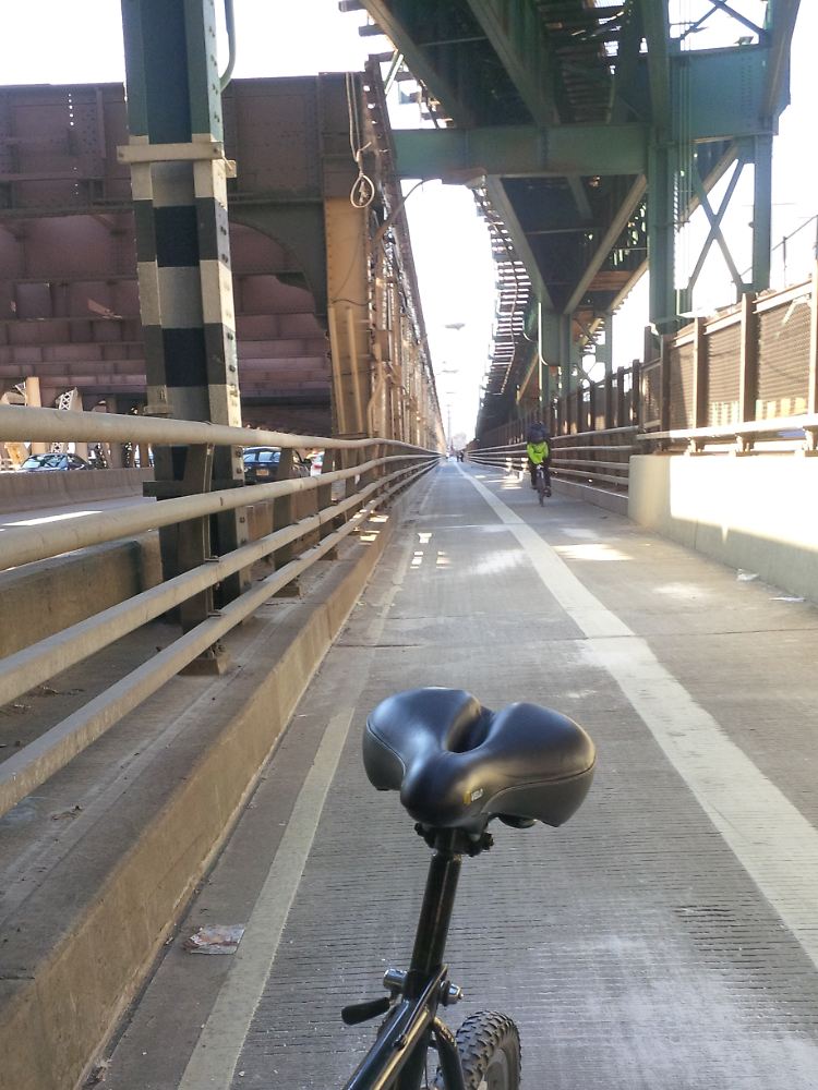Ich stand oder saß nun schon so oft in der New Yorker Subway, dass es mir ein bisschen eng wird. Stickige Luft, schlafende Menschen, leere Blicke auf Smartphones ... danke, reicht mir. In Berlin fahre ich fast nur noch Fahrrad. Warum nicht auch hier? Ständig sehe ich hier Mountainbiker, Rennradfahrer und E-Biker. Es scheint also zu gehen.