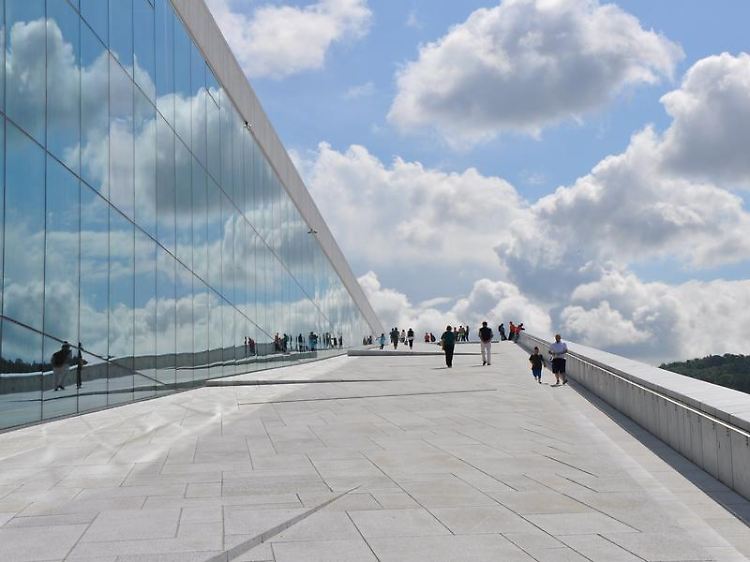 Mittlerweile ist es abends um sieben. Dämmerung? Die ist nicht in Sicht. Erst gegen 23.00 Uhr wird es langsam dunkler. Die Dämmerung taucht alles in ein bläuliches Licht. Auch das spektakuläre moderne Opernhaus direkt am Wasser, das mit seinem weißen Marmor sonst an einen Eisberg erinnert, schimmert nun in mystischem Blau. In der Ferne sieht man auf den zahlreichen Inseln kleine Feuer brennen, und auf dem Pier im herausgeputzten Viertel Aker Brygge spielt eine Mädchenband in Matrosenoutfits den perfekt zur Stimmung passenden Rolling-Stones-Klassiker "Let's spend the night together".