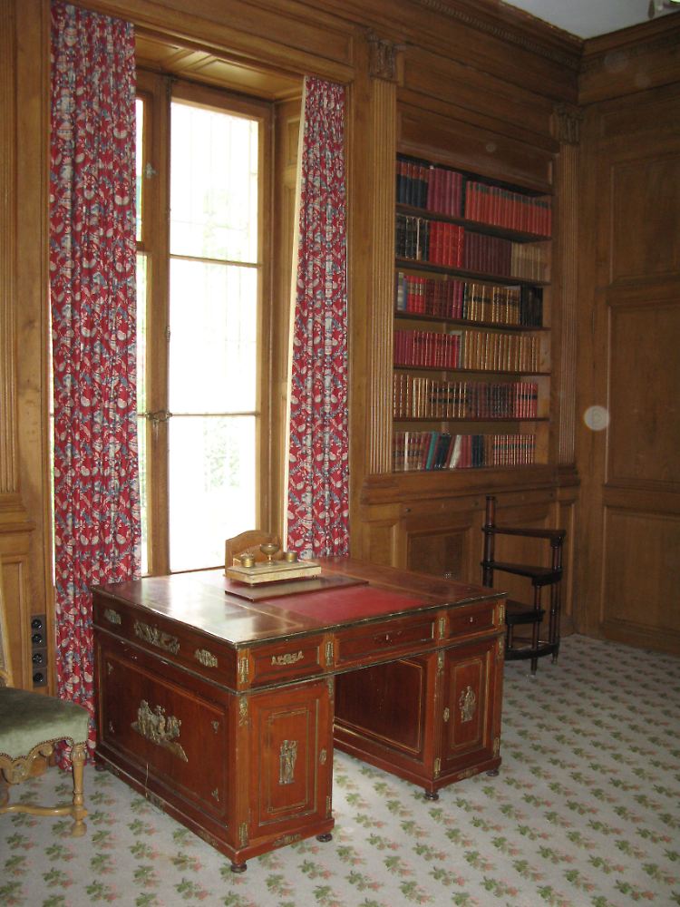 Der zweiseitig zugängige Schreibtisch Chaplins in der Bibliothek, an dem er viele seiner Filme entwickelt hat