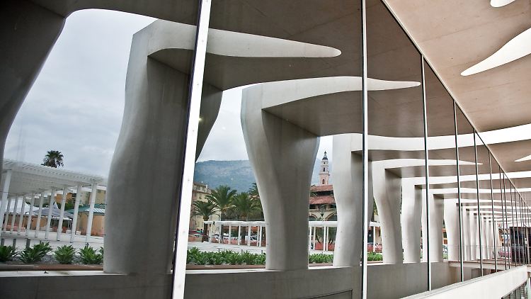 Loderndes Flammenmeer oder ein riesiges Herbstblatt im Licht? Den schönsten Blick auf das neue Jean Cocteau-Museum im südfranzösischen Menton an der Côte d'Azur hat man von oben. Steht man davor, verlieren sich die arabesken Formen, die auf dem Dach des Museums zusammenlaufen. Übrig bleiben wellenförmig gestaltete Betonpfeiler, zwischen denen man von innen einen herrlichen Blick aufs Meer hat. Cocteau hätte die Architektur des 14 Millionen teuren Museums sicherlich gefallen. Sie spiegelt den Stil des Universalkünstlers wider, der als Schriftsteller ebenso tätig war wie als Regisseur und Maler - spielerisch, fließend, exzentrisch.