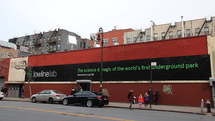 Von außen deuten nur die Sonnenkollektoren auf dem Dach darauf hin, dass es sich bei dem Gebäude im Osten Manhattans nicht um eine ganz normale Backsteinhalle handelt. "Lowline Lab" steht in großen Buchstaben auf der Wand neben dem Eingang. Hinter den dicken roten Mauern wird derzeit ausprobiert, was 2020 in New York Gestalt angenommen haben soll: Die "Lowline", der nach Angaben der Initiatoren erste unterirdische Park der Welt.