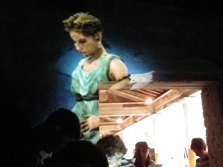 Das Ende: Die schwangere Tochter des Polybius' erscheint im heutigen Pompeji stumm und entsetzt als Hologramm.