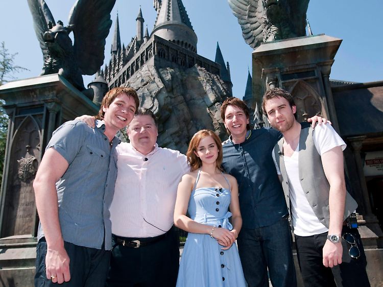 Die Filmdarsteller Emma Watson, Robbie Coltrane, James und Oliver Phelps und Matthew Lewis durften schon mal einen Blick werfen ...