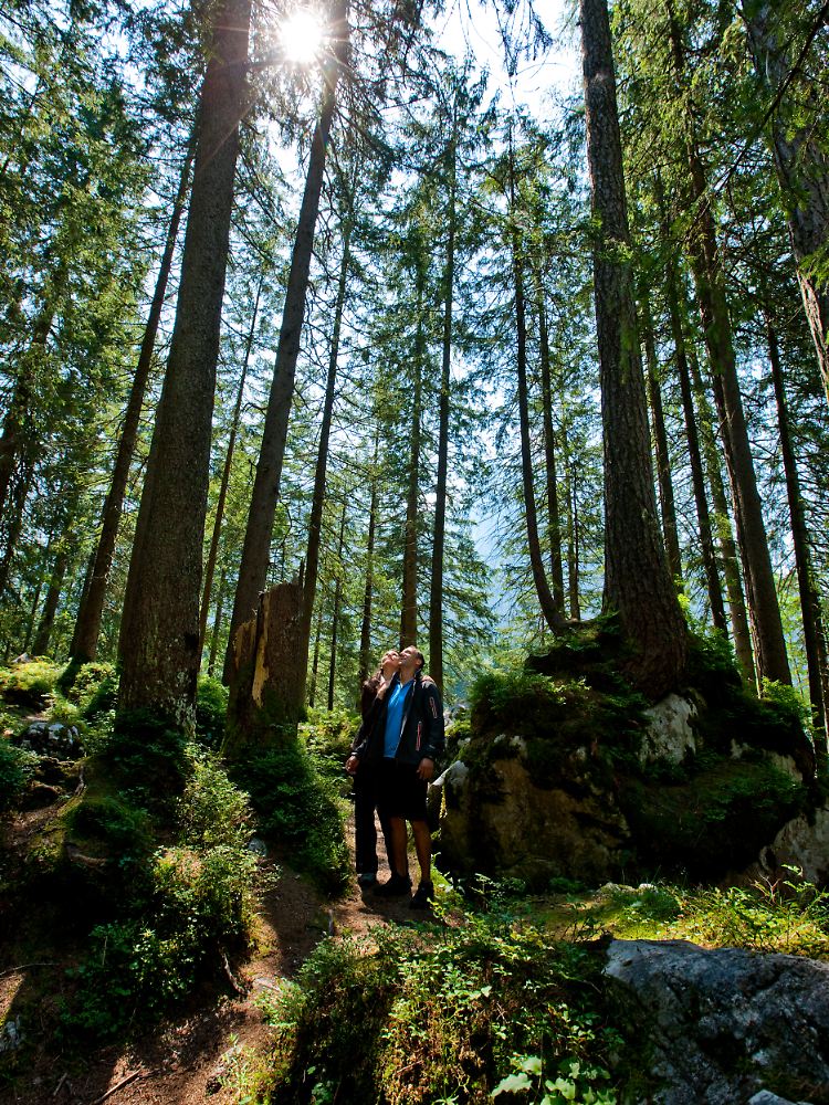 Dem Zauber des Ensembles aus Wald und hingekullerten Felsen, durch das sich das frischgrüne Wasser plätschernd seinen Weg in den Hintersee bahnt, sind zwischen 1920 und 1930 auch Touristiker erlegen. Sie nannten es Zauberwald.