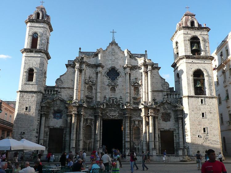 Am Abend bringt uns der klapprige kleine Schulbus nach Habana Vieja - zur Altstadt. Emanuel (Name geändert), der Chef der Schule, führt uns durch Gassen mit sanierten barocken und neoklassizistischen Häusern. Das Ensemble, das zum Unesco-Welterbe gehört, wirkt im Dunkeln wie ein Freilichtmuseum. In einem wunderschönen alten, nobel wirkenden Gebäude verbirgt sich ein Lebensmittelladen für die Einheimischen. Hinter dem schönen großen Holztresen sitzen zwei Männer und plaudern. Die Regale an der Wand sind leer.