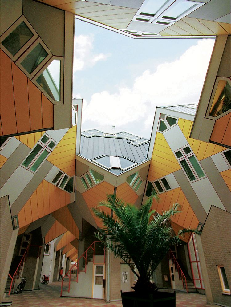 Die Kubushäuser von Piet Blom stehen seit 1984 am Alten Hafen von Rotterdam.