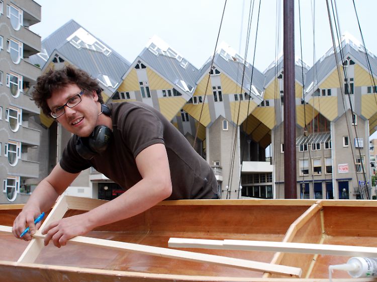 An Wochenenden frönt Jesse Kazemier seiner Leidenschaft, Kanus in Handarbeit herzustellen. Gern gibt er auch Touristen Auskunft, aber eine Pause macht er dafür nicht. "Schließlich sind wir in Rotterdam", sagt Jesse. "Unser Motto lautet 'Niet lullen maar poetsen!'" - frei übersetzt: "Nicht labern, sondern rackern". In Rotterdam, so sagt man, werden Hemden immer gleich mit aufgerollten Ärmeln verkauft.