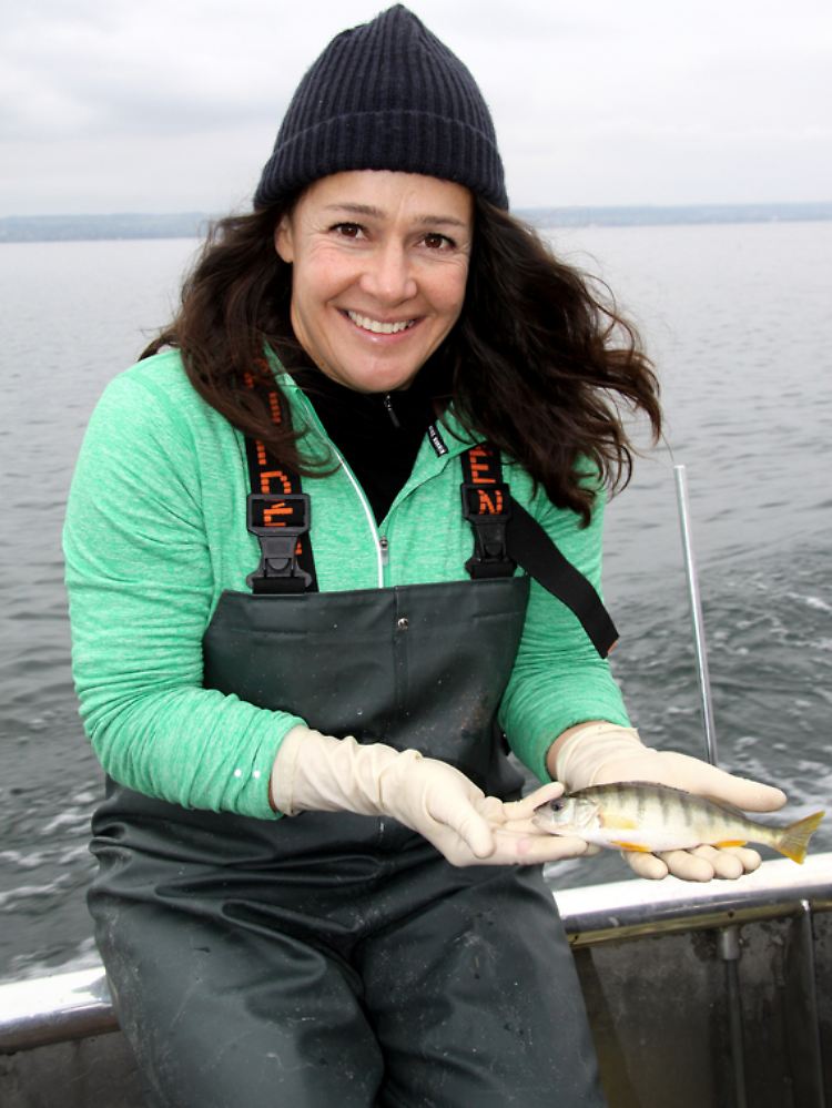 Sie zeigt auf Kniehöhe: "Ich bin damit aufgewachsen, habe drei Schwestern und keinen Bruder, der das sonst vielleicht von meinem Vater hätte übernehmen sollen. Mir hat es immer Spaß gemacht." Sieben Fischerinnen gibt es am Bodensee, von über 100 Fischern insgesamt.