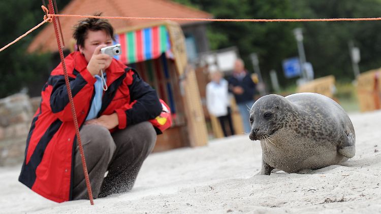 Am Freitagmorgen sitzt Ulrike Bannert aus Korbach (Hessen) noch fast allein bei grau trübem, kühlem Wetter im Sand, angelehnt an einem Strandkorb und beobachtet "Trudi" im Wasser und an Land. "Ich komme schon seit Tagen." Warum? "Es ist spannend zu sehen, wie sie sich verhält, sie beruhigt mich - solche Tiere kann man ja sonst auch nur im Zoo sehen" Ein 78-jähriger Mann schert sich nicht um den Seehund. "Nein, ich habe keine Angst, mit dem Tier gemeinsam im Wasser zu schwimmen", sagt der weißhaarige Brillenträger, als er aus der Ostsee an Land geht.