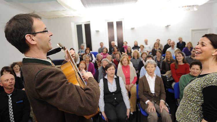 Ein Diplom gibt es hier nicht. "Darauf kann man hier lange warten", stellt Eva Becher vom Kulturreferat der Stadt München als erstes klar. Dafür wird umso kräftiger gejauchzt und gejodelt - und das mitten in München-Pasing. Im Proberaum der Bayerischen Philharmonie haben sich rund 85 Jodel-Anfänger eingefunden, denn das "textlose Singen mit fortwährendem Registerwechsel zwischen Brust- und Kopfton" befreit und baut Stress ab - und ist noch dazu eine "Mordsgaudi", sind die Teilnehmer sich einig.