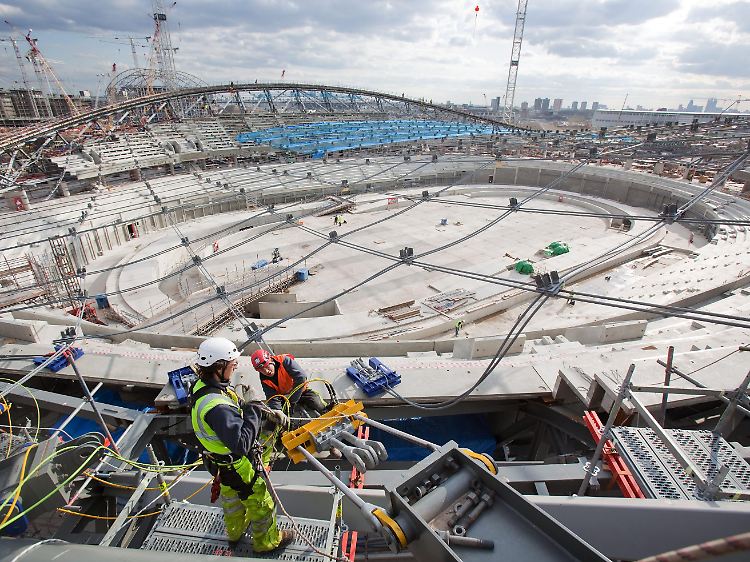 Noch knapp zwei Jahre bis zu den Spielen: Kabelarbeiten im neuen Velodrom im Olympia Park von London (Archivfoto vom 15. März 2010).
