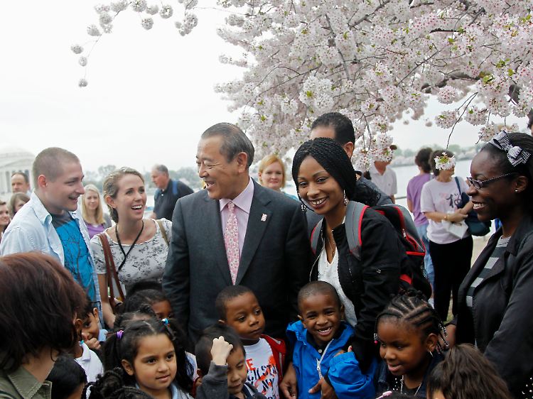 Ichiro Fujisaki, Japans Botschafter in den USA, inmitten von Besuchern des Kirschblütenfestes.