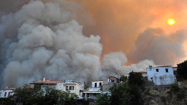 Hunderte Feuerwehrleute und freiwillige Helfer hatten die ganze Nacht durch gegen die Flammen gekämpft. Der Brand war in der Nähe des Feriendorfes Marathokampos ausgebrochen. Dutzende Urlauber mussten in Sicherheit gebracht werden. "Der Brand ist außer Kontrolle. Der Himmel ist verdunkelt. Wir evakuieren Hotels und Pensionen und bringen Urlauber in Sicherheit", hatte der Bürgermeister von Marathokampos, Giorgos Koutsodontis, am Montag im griechischen Fernsehen gesagt.