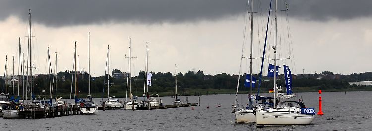 Dunkle Wolken über der Warnow in Rostock: Der Sommer hat bis auf weiteres eine Pause eingelegt.