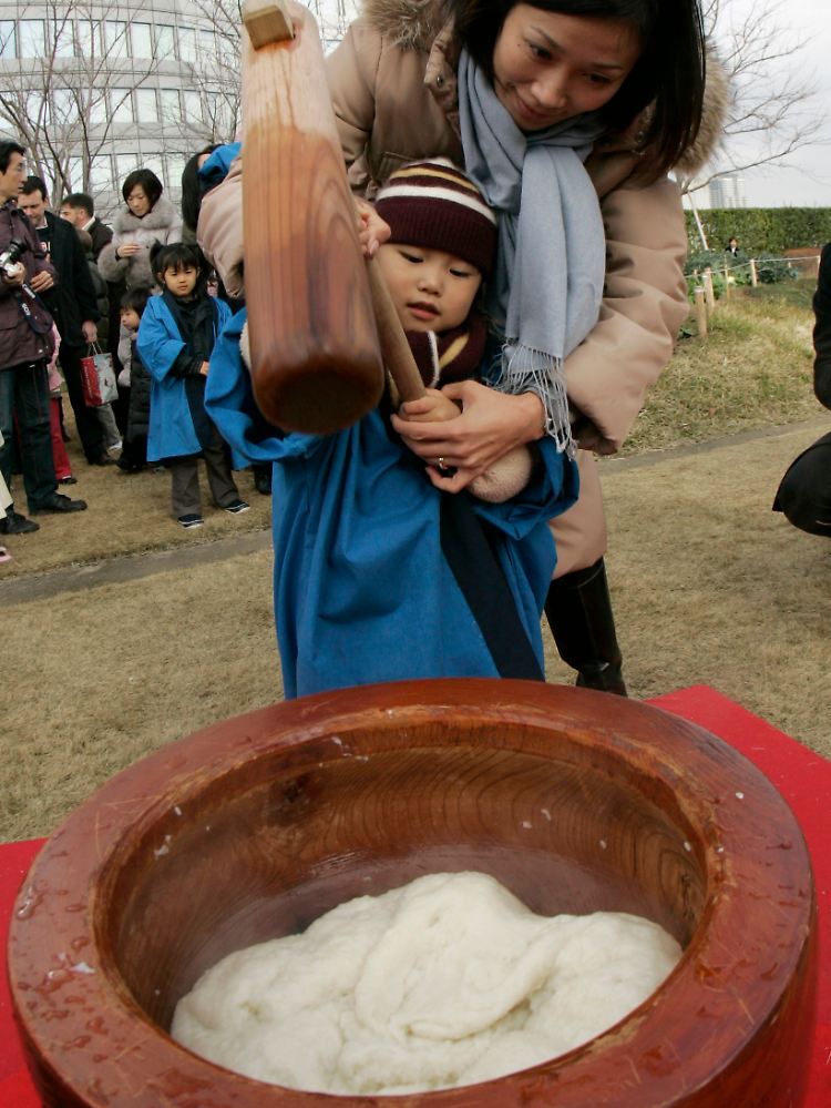 In Japan kommen traditionell zur Jahreswende Mochis auf den Tisch. Die Klöße aus Klebereis sollen Glück fürs neue Jahr bringen und ein langes Leben versprechen. Kurzfristig gesehen bringen sie dem einen oder anderen jedoch eher Unglück, denn die klebrige Konsistenz der Klöße hat schon so manch einen Japaner ersticken lassen. Damit das nicht passiert, wissen die Japaner über Erste Hilfe bestens Bescheid: Fünf Schläge zwischen die Schulterblätter des am Boden liegenden Opfers sollen die Notsituation abwenden und den Erstickenden vor dem qualvollen Mochi-Tod bewahren.